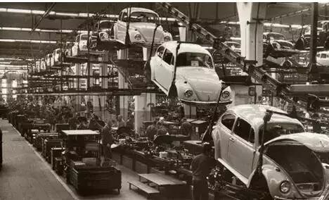 流程化:上图是大众汽车1969年的生产流水线,自动化程度比现今国内很多车厂的自动化程度都高。生产流程化的核心目的就是把生产过程切分成非常细小的片段,每个片段都遵循严格的顺序加工,片段之间用自动化的传动装置连接起来,每个片段简单到不需要人工操作的时候,就被机器取代了。另一个行业的例子,说起软件公司,大家都记得微软之类的美国公司,但是做流程软件最成功的却是德国的SAP,他们把企业(甚至非生产型组织)内部所有流程都固化到软件里面,把企业里面每个人都通过软件固化到一个功能,最后完成了企业的可靠高效运作,这就是流程化的威力(我想企业里面用过SAP的ERP系统的人,特别是财务采购之类的肯定特别熟悉)。